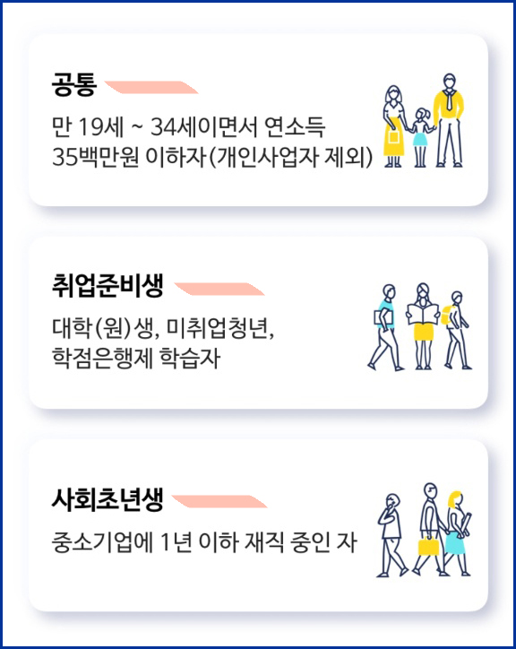 - 취업준비생 : 대학생, 학점은행제 수강자, 미취업 청년(무직자)