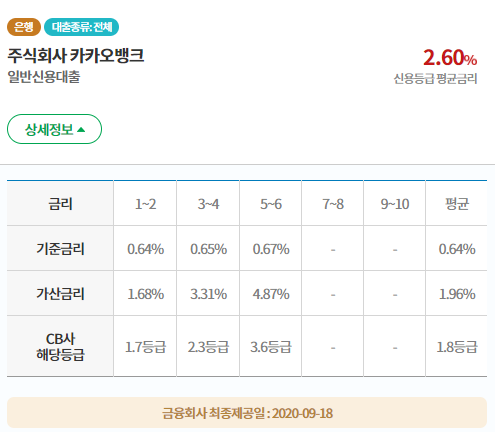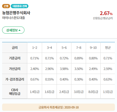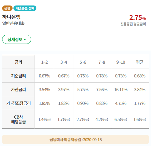2020.10.13 기준 최저금리 1.91% 최고금리 3.69%