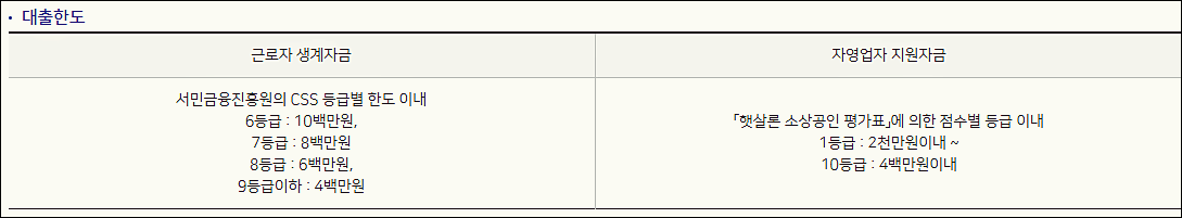 대출한도는 근로자 생계자금의 경우 신용등급에 따라 다르게 되는데요.
