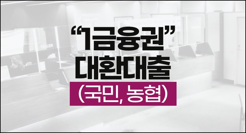 1금융권은 국민은행, 농협 뿐 아니라 우리, 신한, 제일, 시티, 기업 등의 은행들이 있지만 다른 곳에서는 대환을 할 수 있는 상품이 따로 있질 않아서 현재 상품이 나와 있는 국민은행 대환대출, 농협 대환대출 정보를 알려드리도록 하겠습니다.